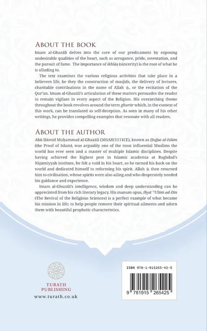 His overarching theme throughout the book revolves around the term ghurür which, in the context of this work, can be translated as self-deception. As seen in many of his other writings, he provides compelling examples that resonate with all readers.