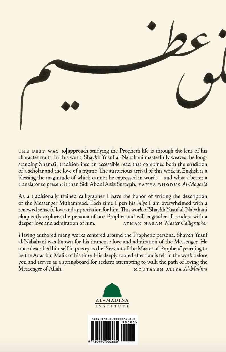 Imam Yusuf b. Isma‘il al-Nabahani, may Allah have mercy upon him, (1265–1350 AH), hadith scholar, Sufi, jurist, judge, and biographer, was born in Beirut, Lebanon. A prolific author, al-Nabahani left behind a staggering collection of works in hadith, fiqh, theology, and most famously, poetry and prose in praise of our master Muhammad, may Allah bless him and grant him peace. Al-Nabahani was a paragon of prophetic love (‘ishq) and his works continue to exercise a profound influence on popular Muslim spirituality.